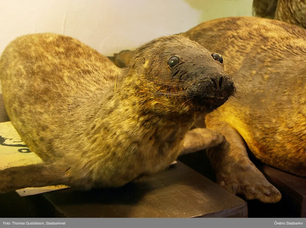 Gråsäl på golvet på Biologiska museet, 2014-04-28