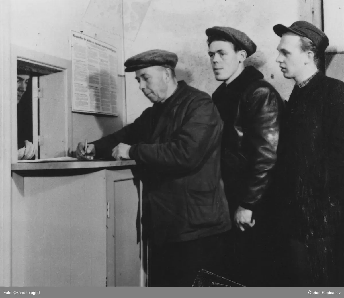 Avlöningsdags vid gamla Verkmästarkontoret, 1940-tal