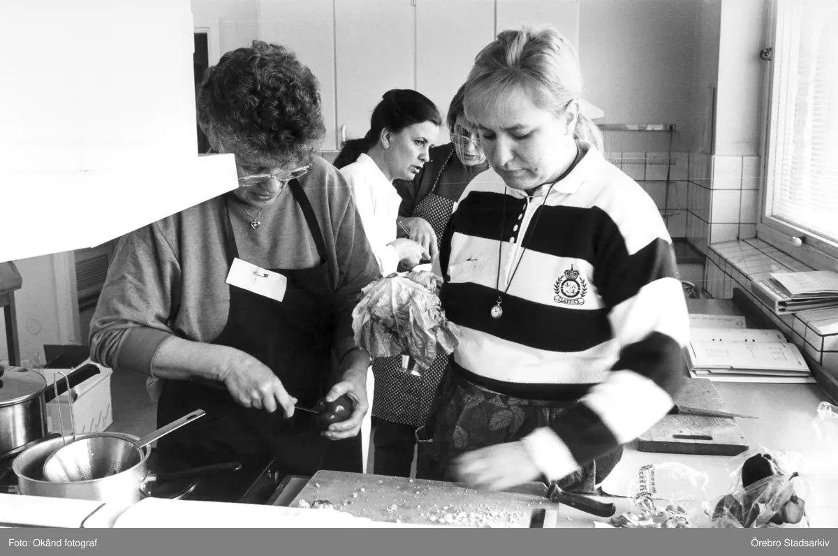 Kökspersonal gör i ordning råkostsallad till dagisbarn, 1988