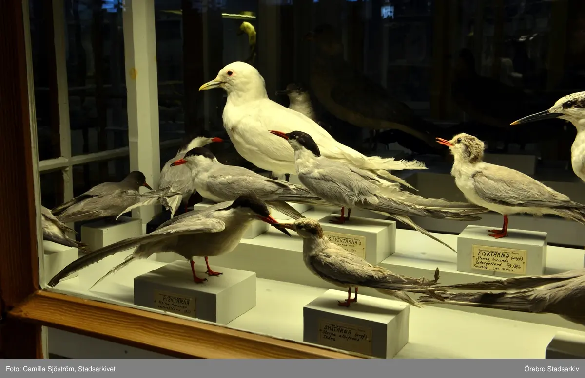 Uppstoppade fåglar i monter på Biologiska museet, 2014-04-28