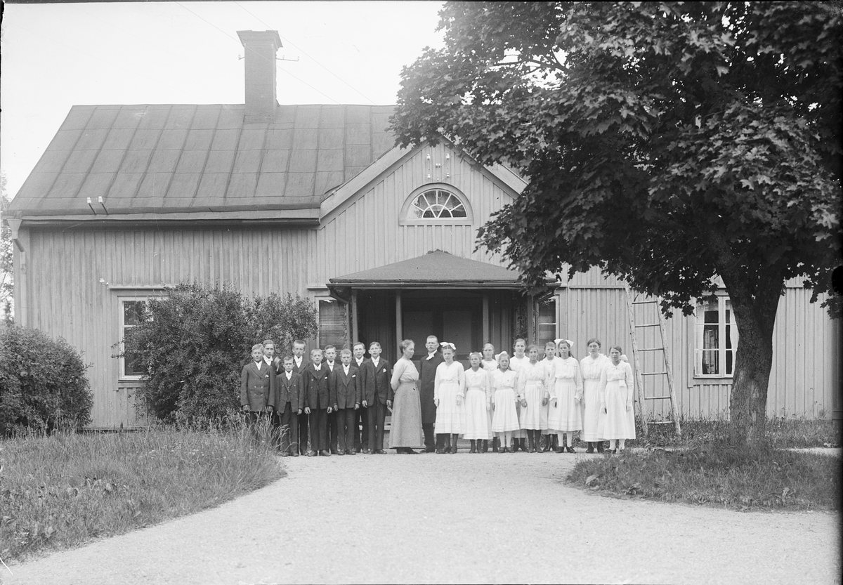 Konfirmander och präst utanför prästgården i Östhammar, Uppland