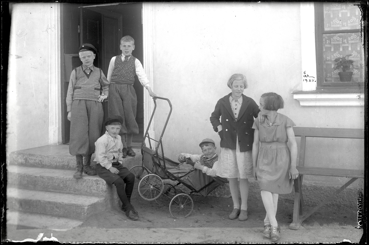 Barn framför hus