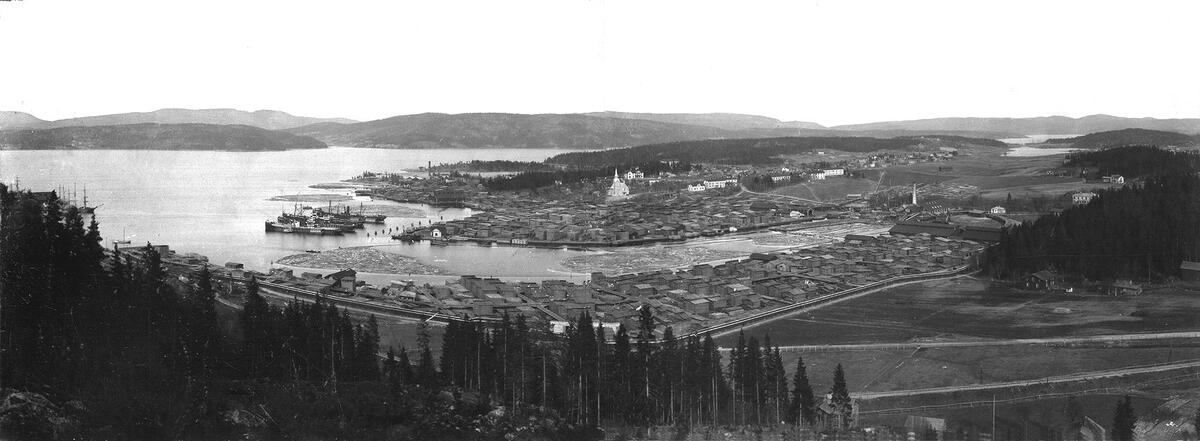 Vy över Bruket med östra och västra sågen. Bilden tagen från Ödsberget.