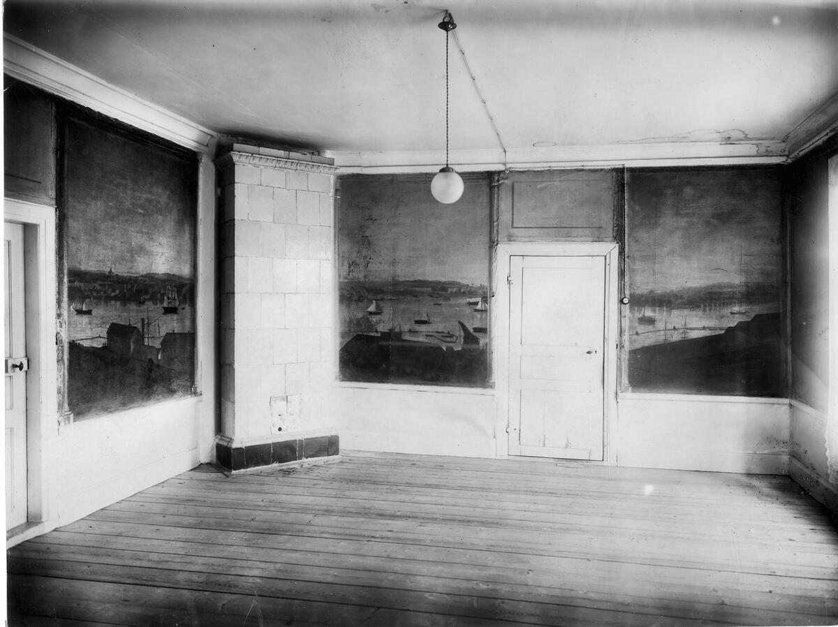 C.J. Holms prästgård, Carlslund, Översjäla, Själevads socken, Ångermanland. Väggmålningar från 1840-talet med Stockholmsmotiiv av G.A. Kjällström. Nu i Åvikegården.