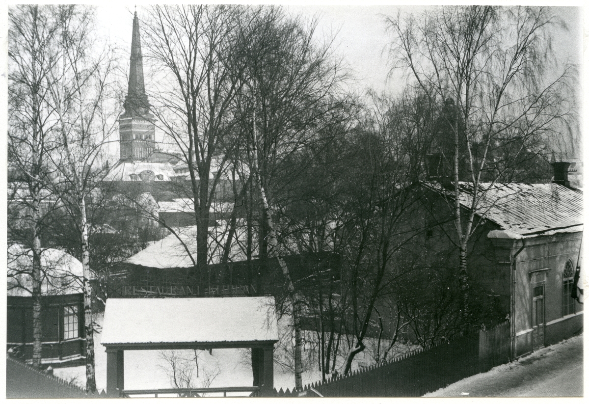 Restaurang Klippans uteservering och musikpaviljong, med portalen i förgrunden. 1910-1930-talet.