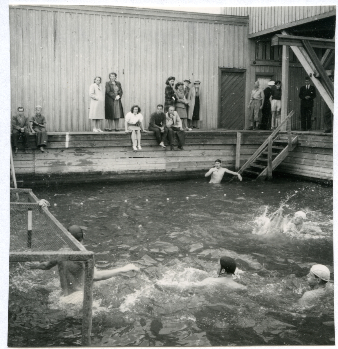 Vattenpolo i gamla kallbadhuset vid hamnen, 1946.