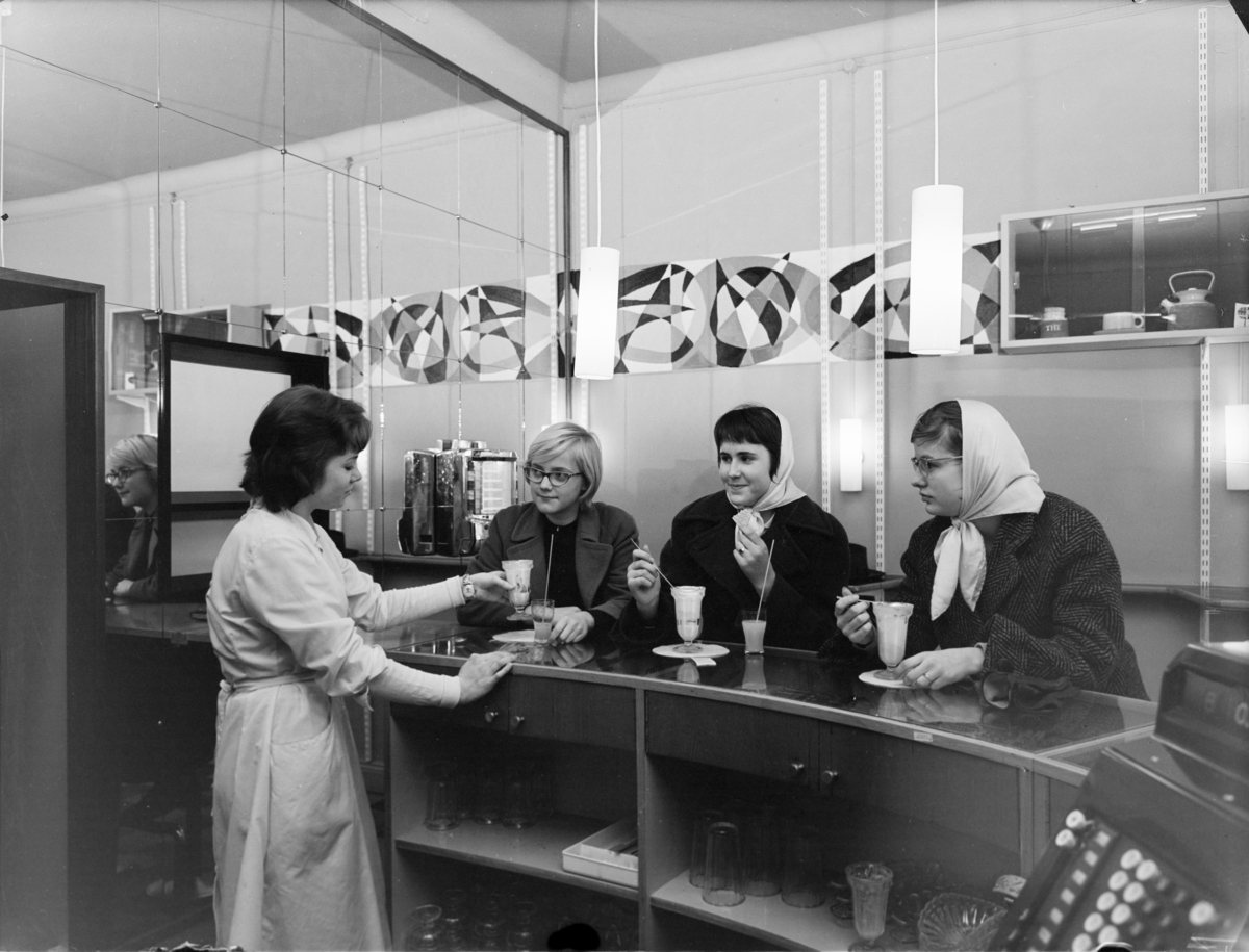 Glace-Bolaget, plastcup med garnering, stängd och öppnad, interiör Vips glassbar