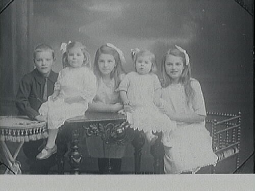 Syskonbild. Tandläkare Tideströms barn, fyra döttrar och en son.