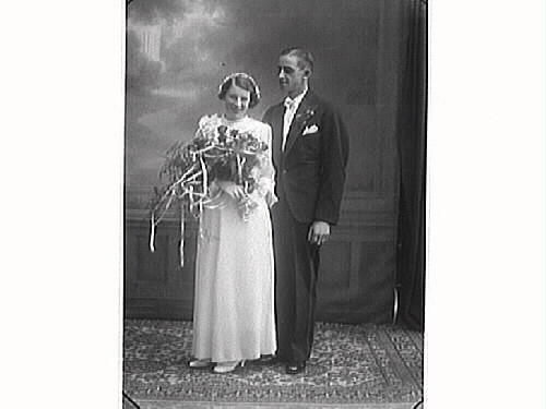 Brudparet Björk från Rosenfred, Varberg. Bröllopsbild. (Se även bildnr MR2_301)