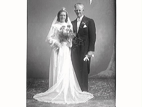 Bröllopsbild. Brudpar, Karl Börjesson Valinge, med fru.