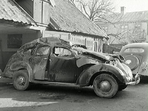 Krockskadad personbil hos Hammarqvists bilverkstad, som låg utmed Borgmästaregatan i kv Nålmakaren.