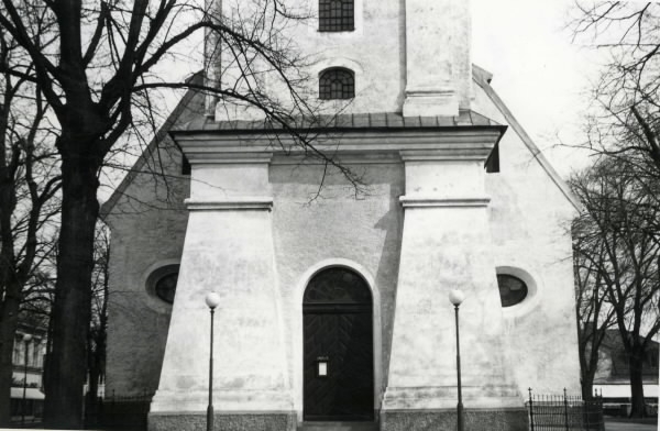Ingången till Varbergs kyrka. Bild 3 visar även tornet. Bilden tagen från väster.