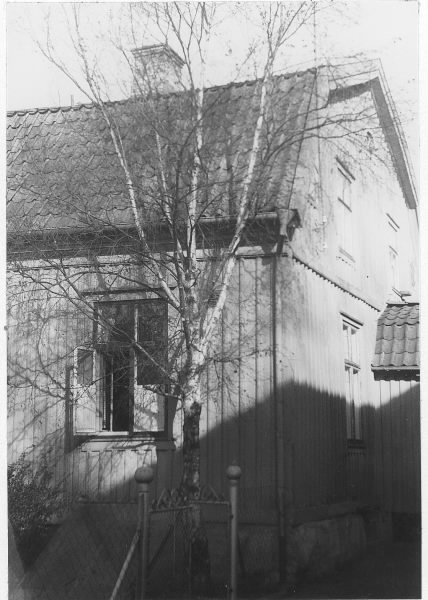 Gaveln till ett bostadhus med mansardtak på Nygatan 2 i Kungsbacka. (Se även bildnr G8631)