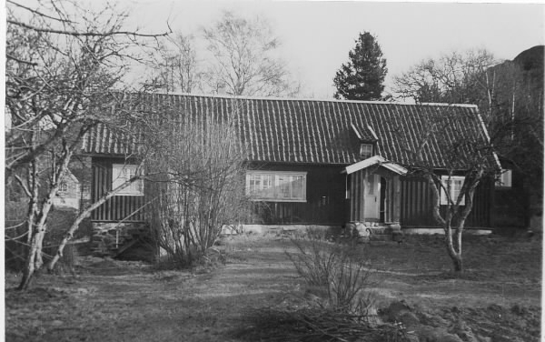 Torp, Algusered, nedre byggnaden. Kring dörren sitter en s k skunke; en grund utbyggnad med rundat valv som sedvanligt har väggfasta bänkar längs sidorna.