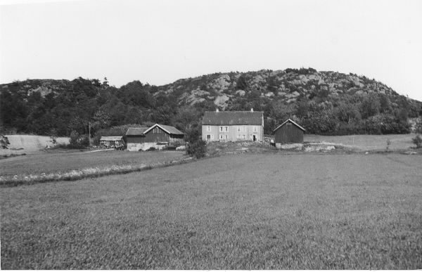 Stora Sannå gård i Släps socken. Mangårdsbyggnaden ligger på en liten höjd i odlingslandskapet, med ekonomibyggnaderna nedanför på ömse sidor. Bostaden är timrad i två våningar. (Se även bildnr G8799)