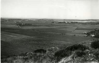 Odlingslandskap. Bilden är tagen från högsta berget mellan Ängås och Halla, mot Vallda Sandö. Ängås, Halla, Vallda socken