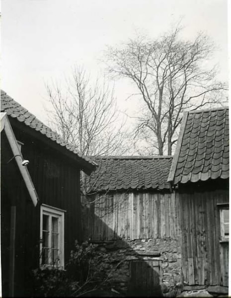 Selma Perssons gård, Rammberg, Älvsåker. Del av bostadshus till vänster, en överbyggd källare i mitten och skymt av ekonomibyggnad till höger.