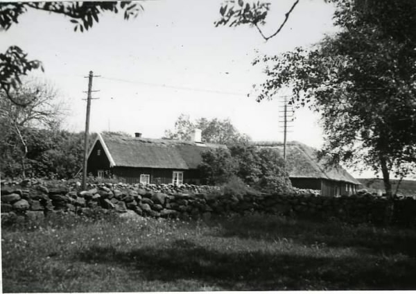 Småstugan Härnäs och bondgården Per-Månses, delvis skymda av stengärdsgården i förgrunden.