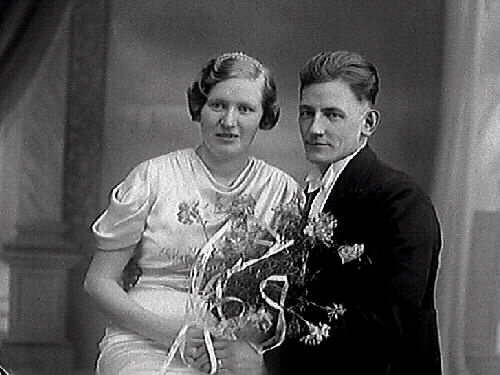 Brudpar, Robert Nilsson med fru. Bröllopsbild.