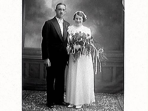 Bröllopsbild av brudparet Bertil Björk med fru, Varberg.