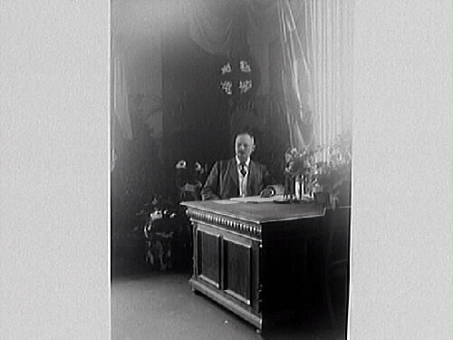 Doktor Petterssons 50-års dag. Överläkaren vid länslasarettet i Varberg fotograferad vid sitt skrivbord.