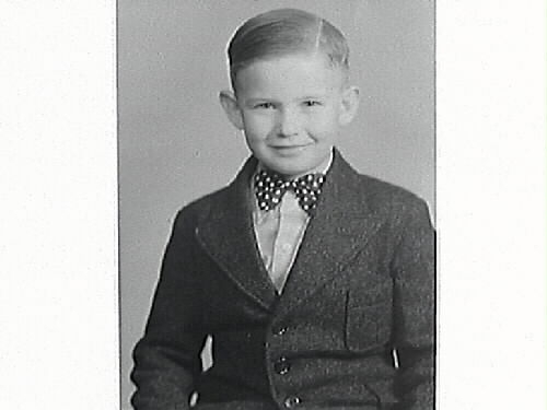 Pojkporträtt av gosse i prickig fluga. Stinsen Gustafsson beställde bilderna och är troligen pojkens far.