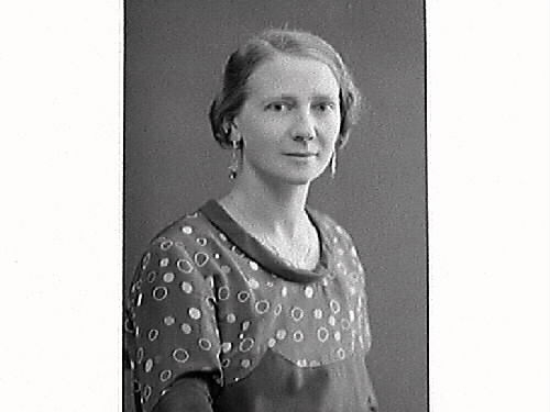 Ung Elsa Andersson (med okänd anknytning till Stadshotellet) i klänning med prickig överdel.