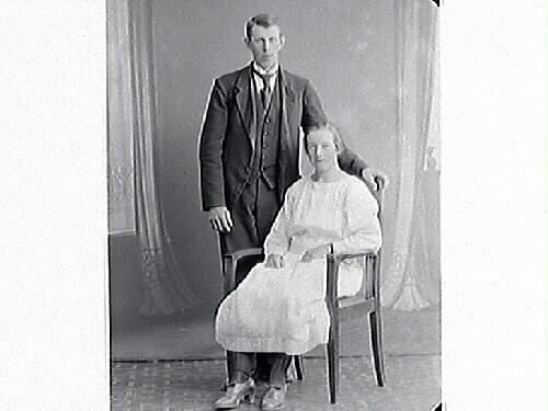 Parporträtt beställt av Emma Hellgren i Fotskäl. Hon sitter och han står bredvid.