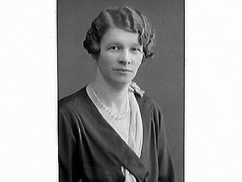 Kvinnoporträtt. Jenny Bäck, Gällared i ondulerad frisyr.