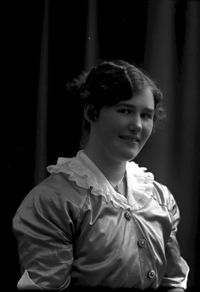 Kvinnoporträtt i bröstbild. Ateljébild. Beställare: Gerda Johansson.