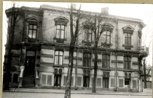 Ett av "tvillinghusen" med Stiftelsens Aftonsol daghem - lekskola. Byggnaden har adress Kungsgatan 5 i kv Prostlyckan 4. Här ses entrén och på det avfasade hörnet finns en balkong mot vägkorsningen.
