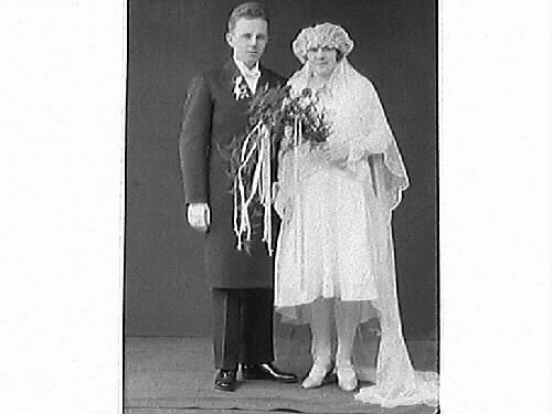 Brudpar. Bröllopsbild. Folke Abrahamsson, Lagerlund (avbildad eller beställare.)