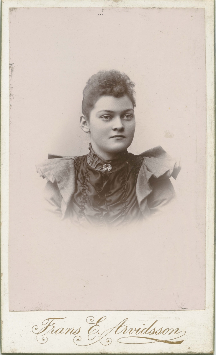 Porträtt på Karolina Carlsson. Född 31 mars år 1877.