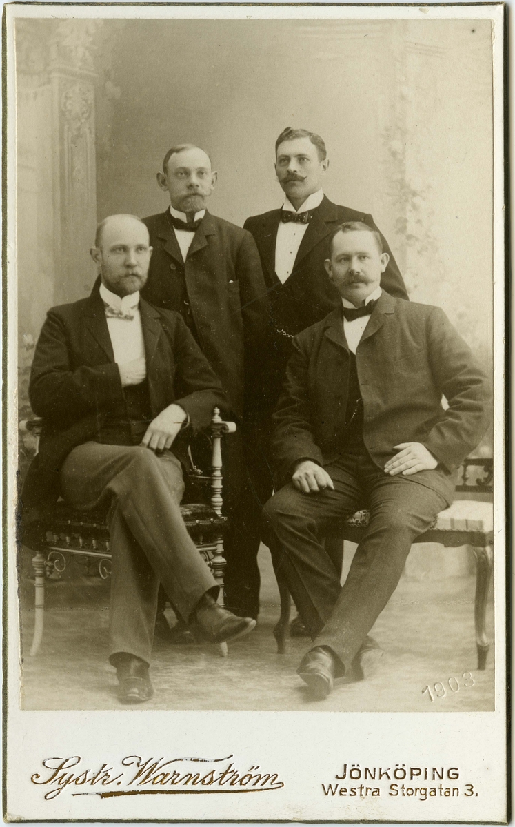 Porträtt på en grupp män. Böjert, Marten, Reinholdsen och Nordström.
