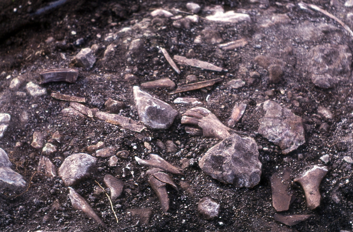 Detaljbild av grävning. Benrester, 1964.