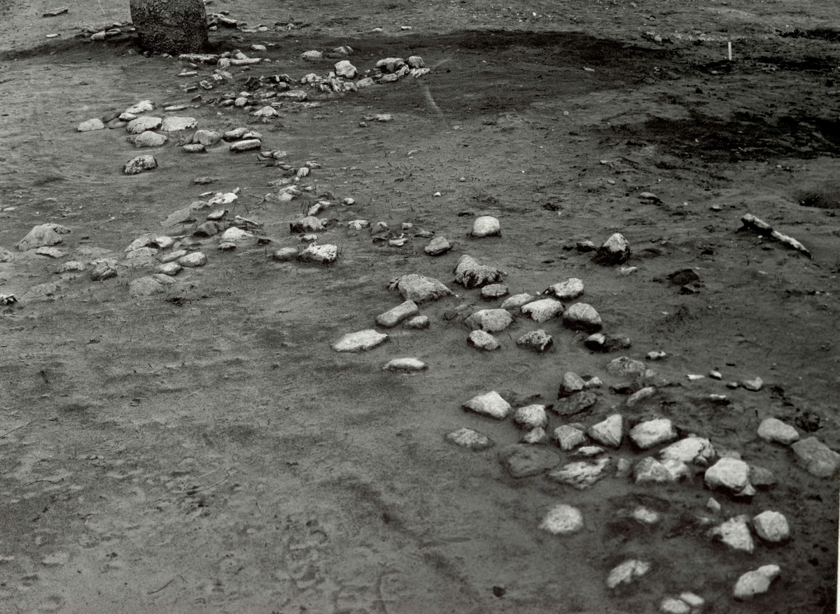 A14. Stensträng, syd-sydväst - nord-nordost. I bakgrunden till vänster i strängen bautastenen A51.