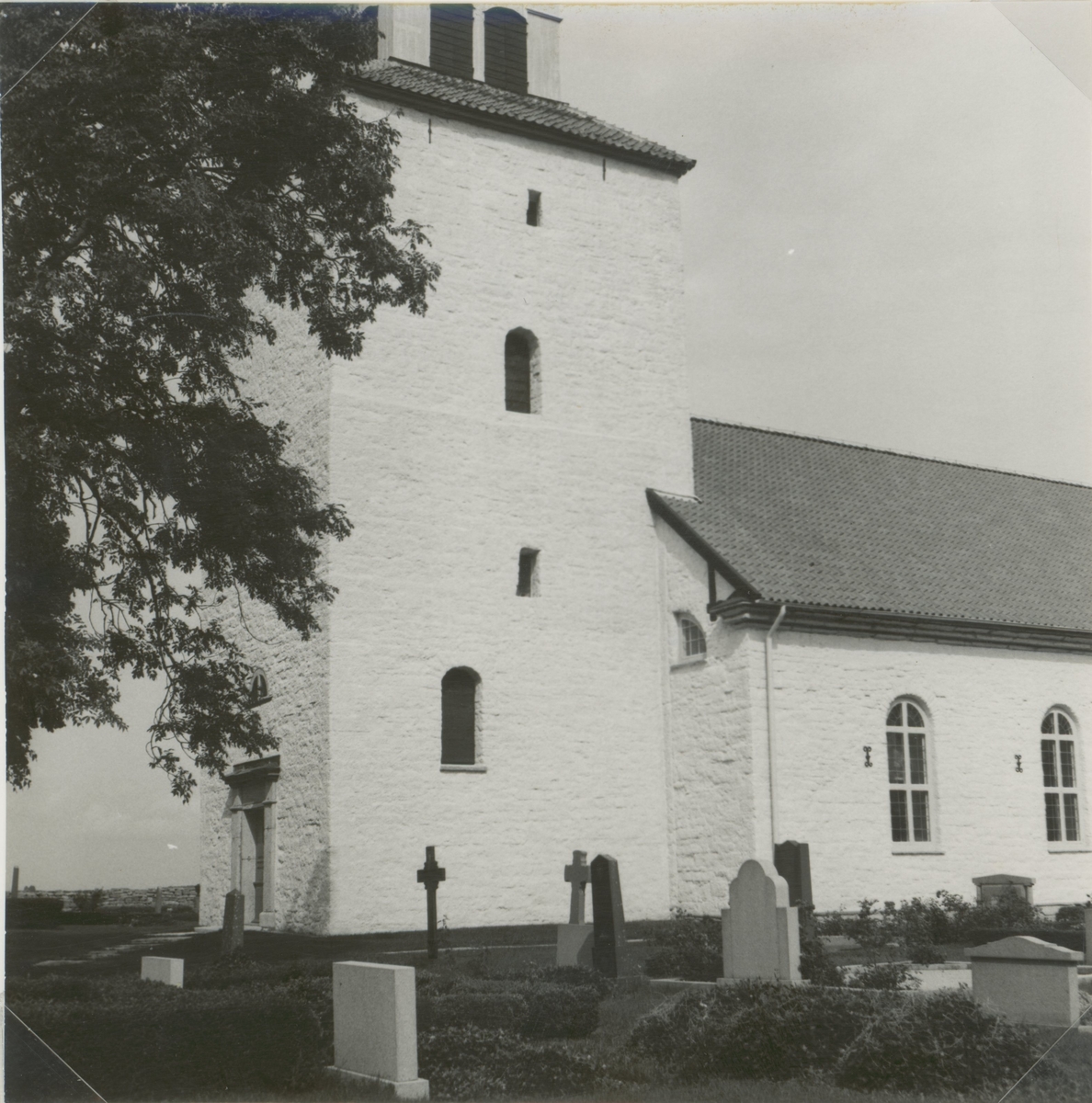 Löts kyrka. Västtornet från sydväst med ny puts.
