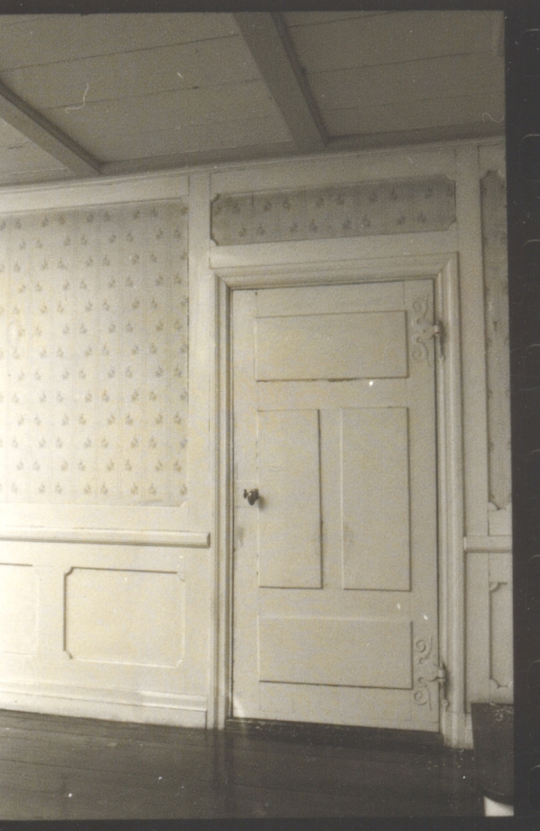 Titel: Interiör från Wahlbomska huset. Wahlbomska eller Sturkska huset på Västra Sjögatan 4 skall ha uppförts av rådmannen och bryggaren Olof Larsson Sturk 1661 och är ett av Kalmars äldsta bevarade trähus. Carl Wahlbom skall ha fötts i huset som då ägdes av hans far enligt den bronsplakett som finns på huset. Det ägdes senare av stadsarkitekten J Fred Olson som skänkte det till Kalmar stad, men det har senare återgått i privat ägo. I samband med den senaste överlåtelsen dokumenterade Kalmar läns museum byggnaden innan den restaurerades med gamla metoder och material. Wahlbomska huset är byggnadsminne.