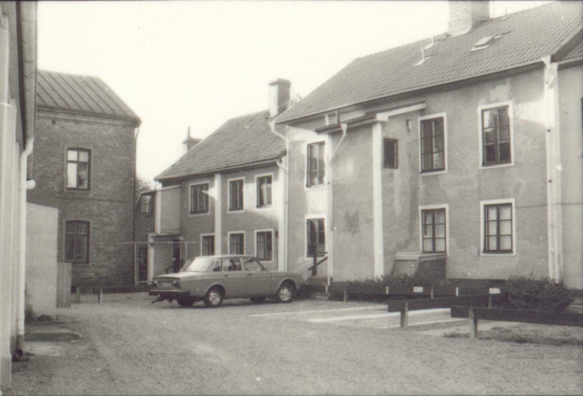 Bil och bostadshus med tegel och putsad fasad i kv Koljan.
