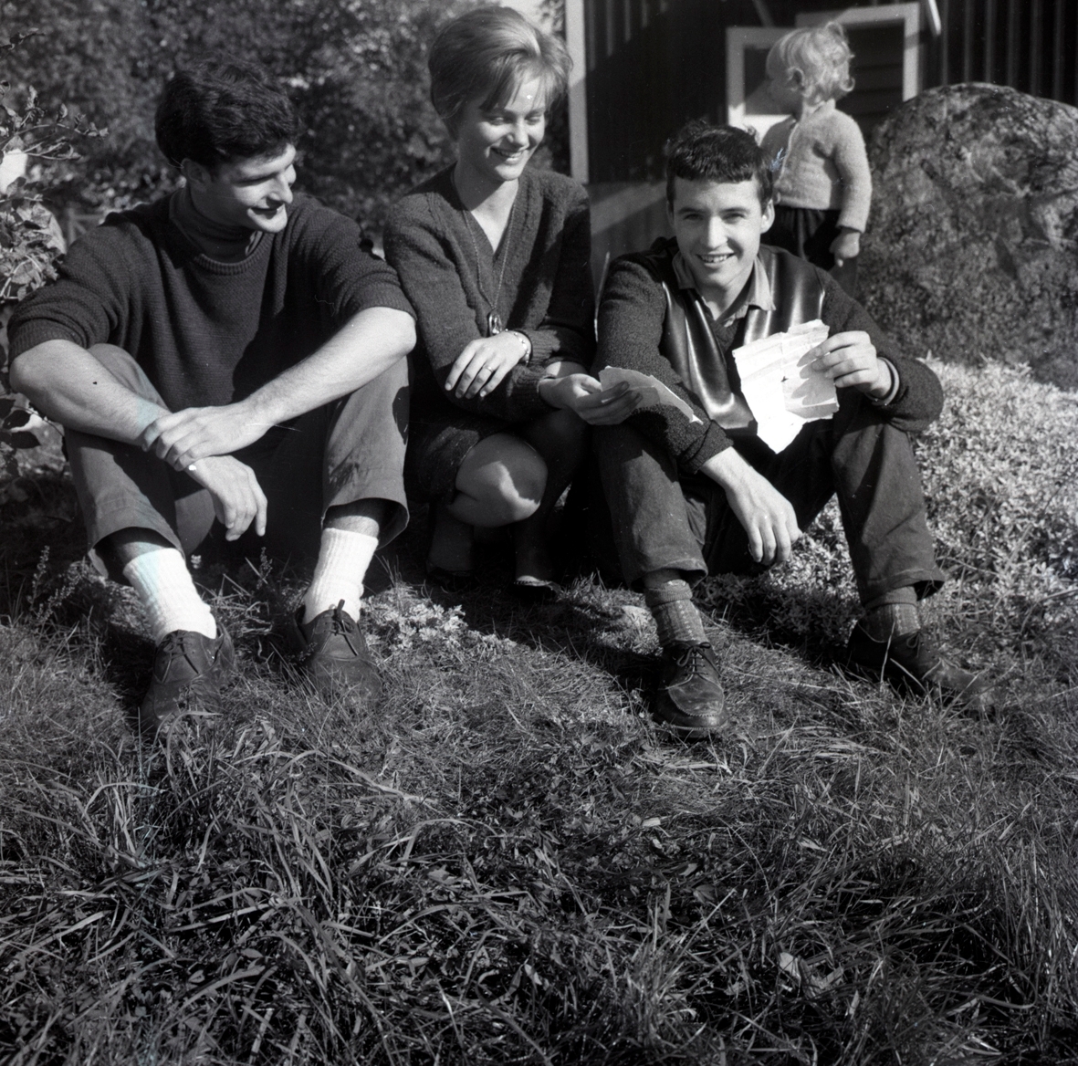 Sonja Karlson, Gaxa backe, med två yngre män.
