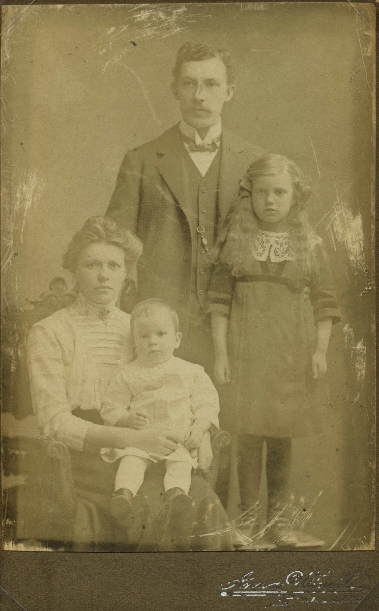 Titel: Skomakare Gustav Johansson med hustru Maria Lovisa, född Nilsson samt dottern Signe och sonen Bengt.