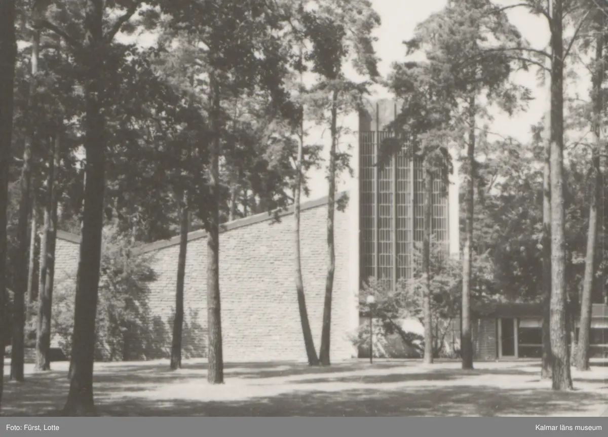 Heliga korsets kyrka, rakt från sidan med entrén till vänster.