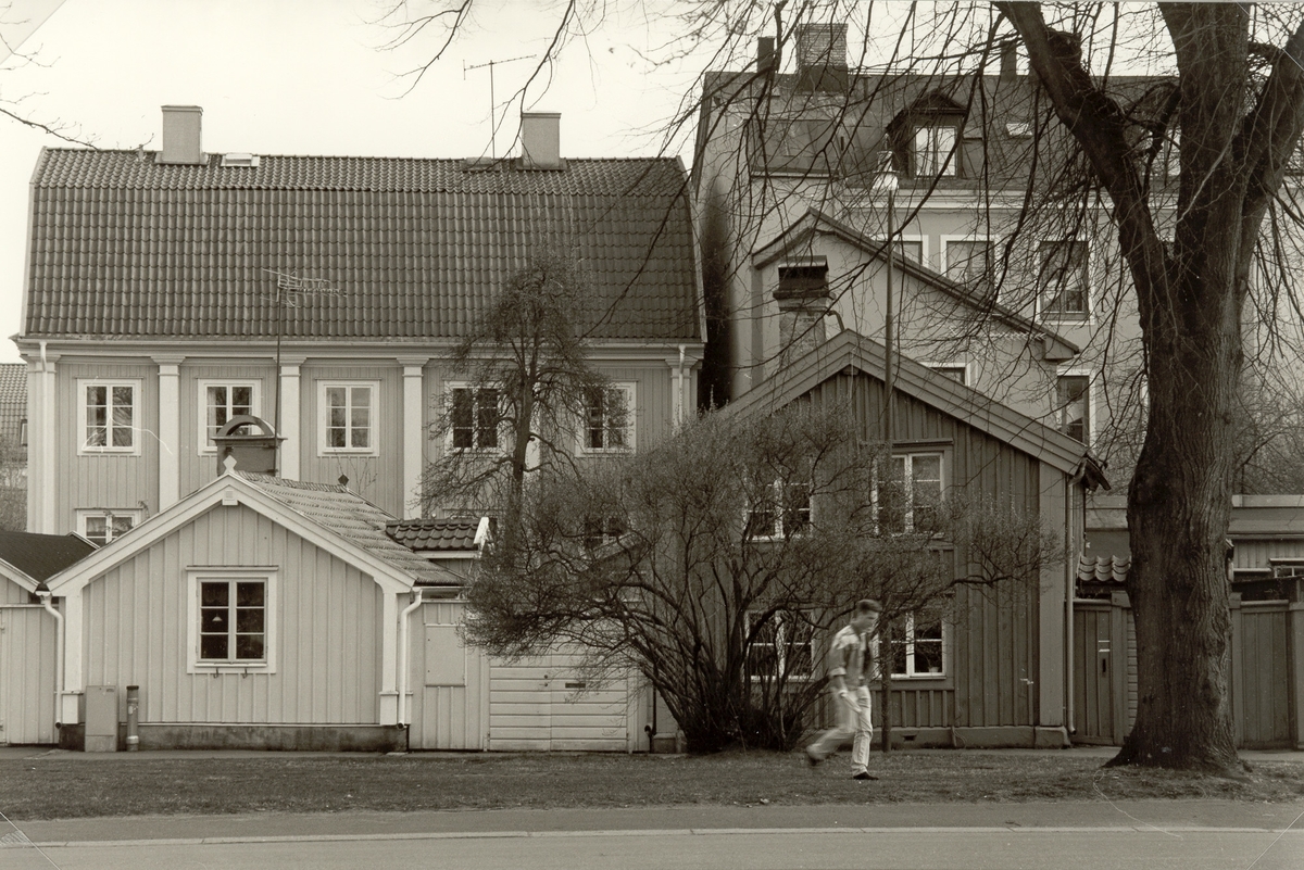 De små trähusen vid Fiskaregatan med det flyttade Kreugerska huset bakom.