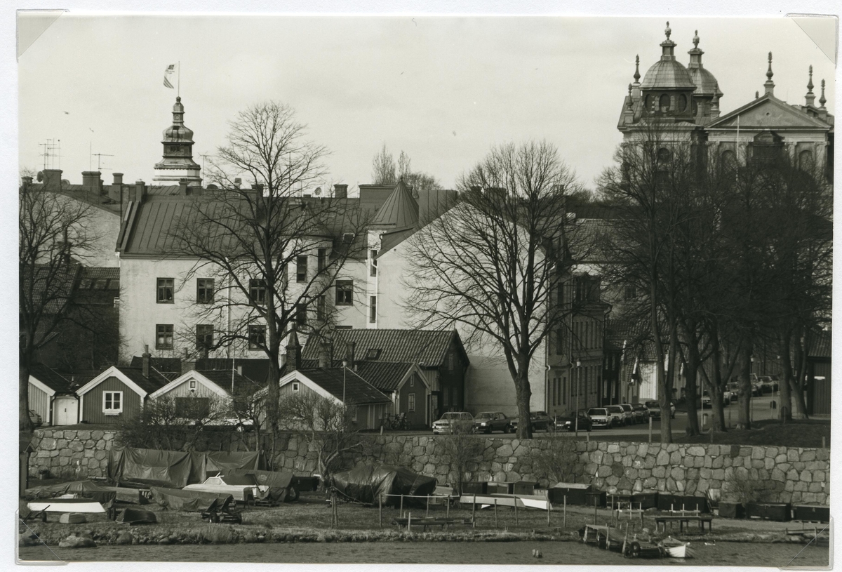 Kattrumpan, del av båtsmansstugorna och Norra Långgatan. Bastionsmuren i förgrunden. Bilden är tagen från en av Kalmar varvs gamla oljecisterner på Varvsholmen.