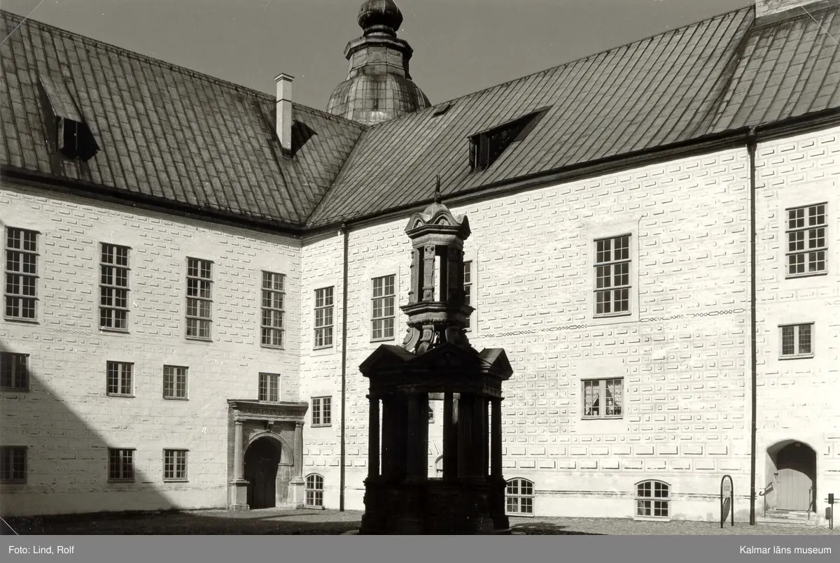 Brunnsöverbyggnad från år 1578 på renässansborggården på Kalmar slott. På 1570-talet knöts bröderna Johan Babtista och Dominicus Pahr till slottsbygget som då fick sin nuvarande renässansstil. Putsad fasad med imiterad kvadersten.