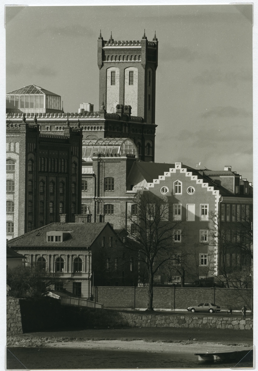 Kattrumpan, Sjöfartsmuseet och Tyghuset sedda från en av Kalmar varvs gamla oljecisterner på Varvsholmen.