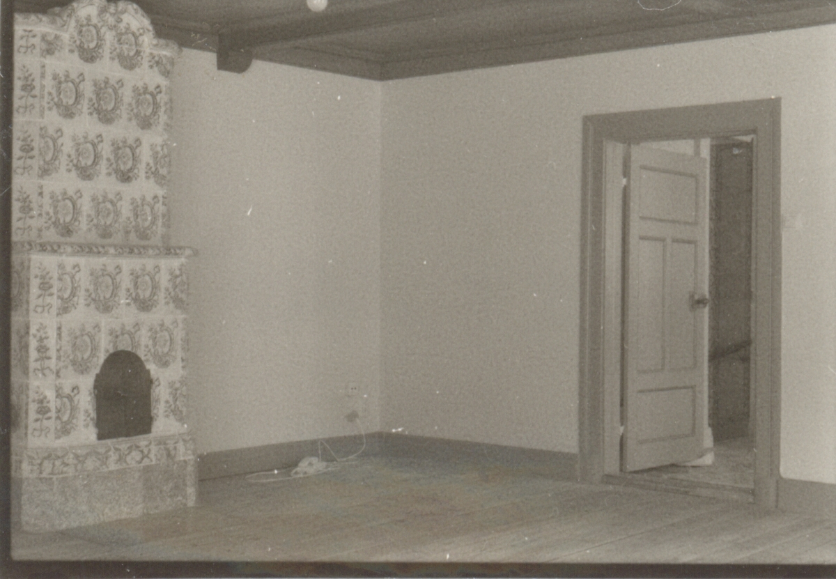 Fyrkantig kakelugn med blomdekor i Wahlbomska huset.