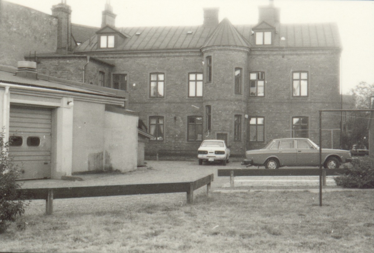 Garage och hyreshus som har rivits i kvarteret Koljan, tomt 5, a-b-c.