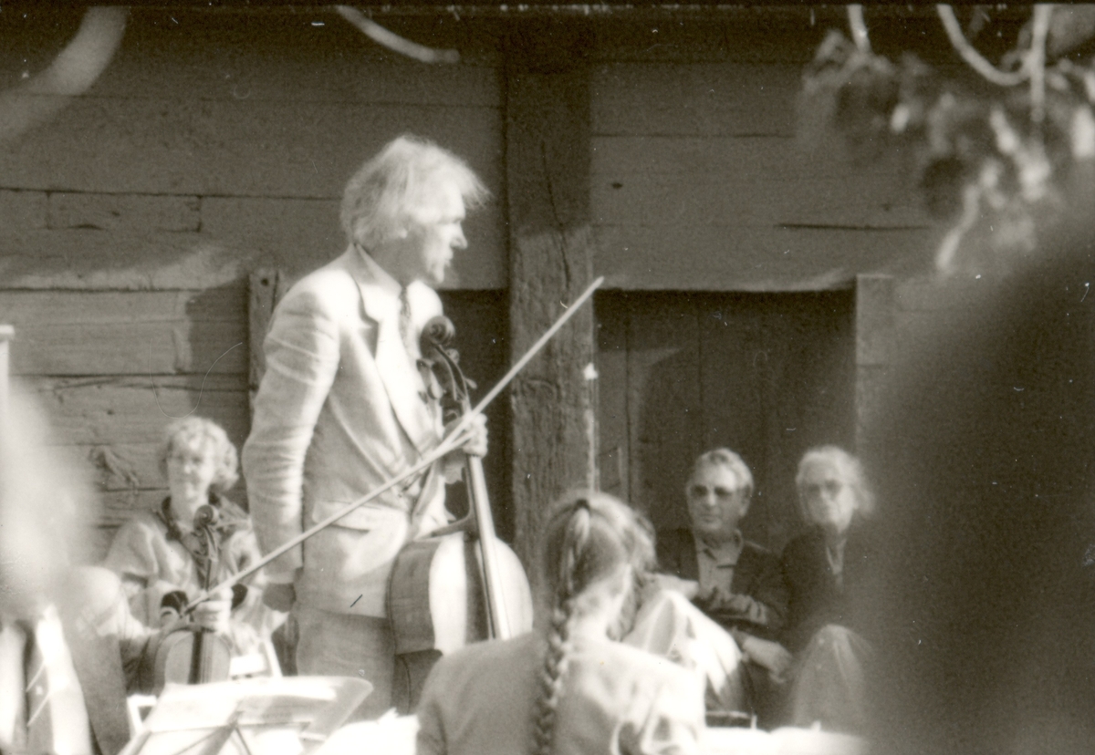 Lyrikafton på Himmelsberga Friluftsmuseum. Cellisten i orkestern.