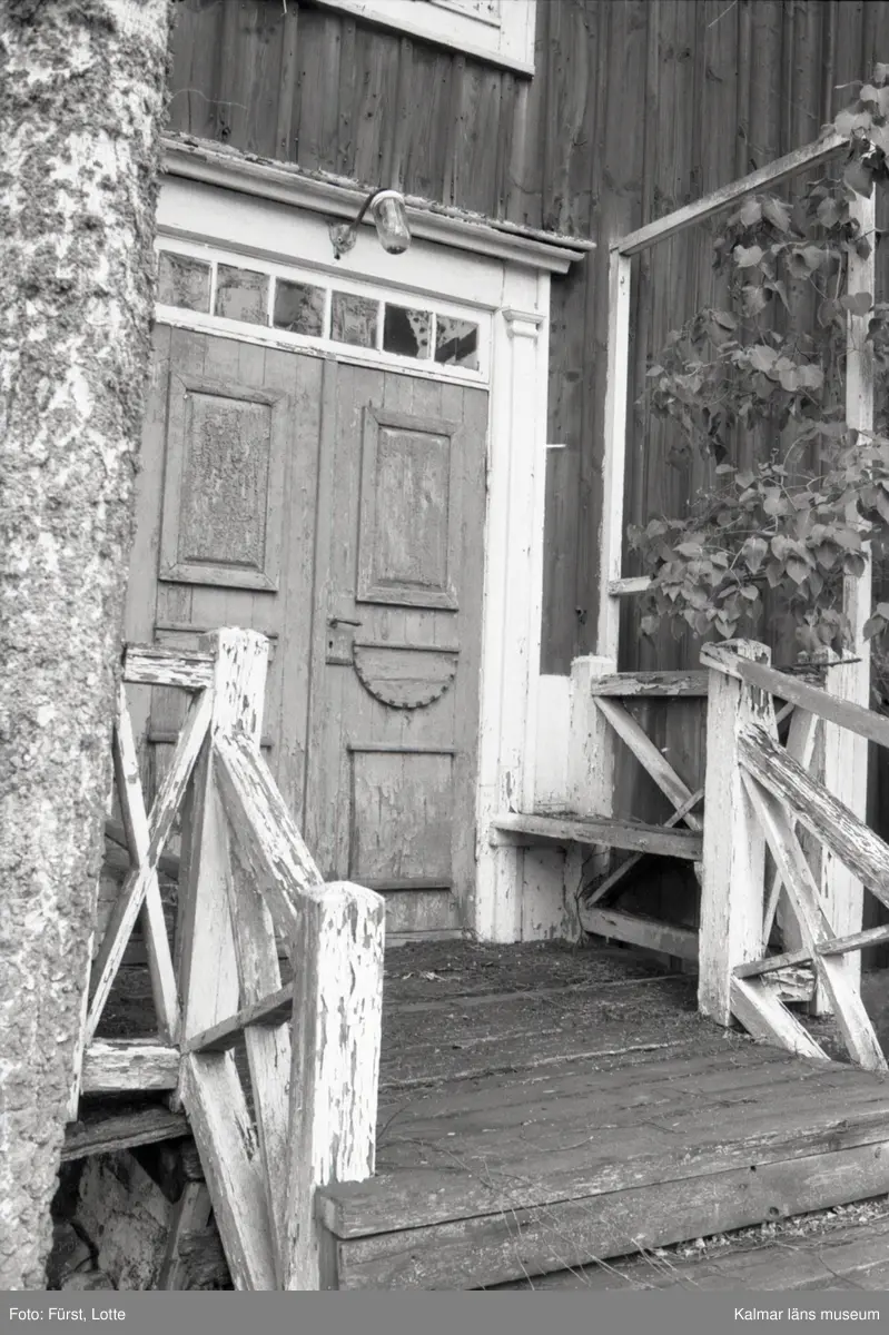 Äldre hus i Kläckeberga, ytterdörren med radbandsfönster.
